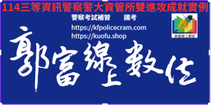114郭富線上[三等資訊警察+資管所][雙進攻][雙榜]最佳典範,學員吳佳晉努力必得成果 郭富線上 … 閱讀全文 郭富線上-雙進攻成就實例